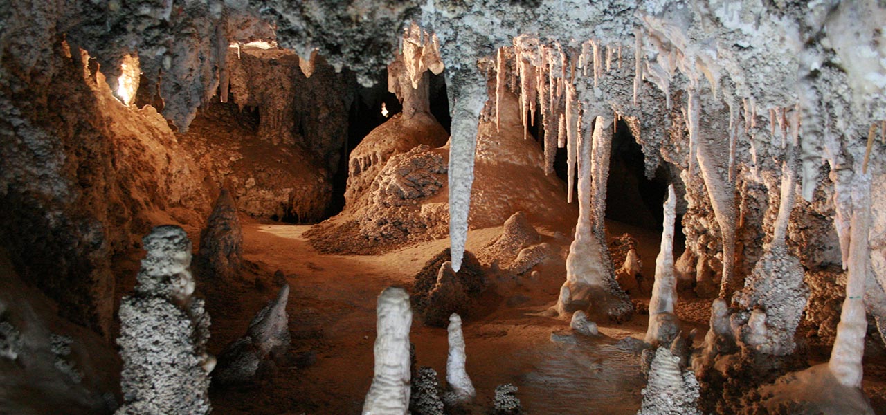 The Jenolan Caves are in an area where karst forms. This landform is categorised by having a complex cave system filled with underground rivers and natural archways. Karst is found in areas where limestone is the primary rock surface and is a result of limestone rock eroding away in freshwater. You’ll find a range of stalactites, stalagmites, columns and straws in the caves at Jenolan.
