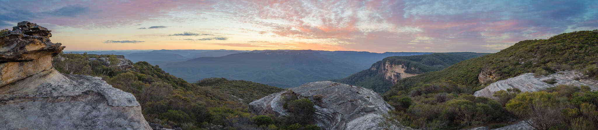 The Kings Tableland proves to be a popular landmark in the Blue Mountains. It is basically the remains of an eroded sandstone layer that sprawls out for around 1,000m just south of the cascading Wentworth Falls. The plateau was named for King George III by the Governor Lachlan Macquarie, a pioneer in the colonisation of Sydney. Forming the major southern spur of the spine of the mountain range, it marks the gateway to the Southern Escarpment, which is made up of tall sandstone cliffs that edge the Jamison, Megalong, Kanimbla, and Hartley Valleys.