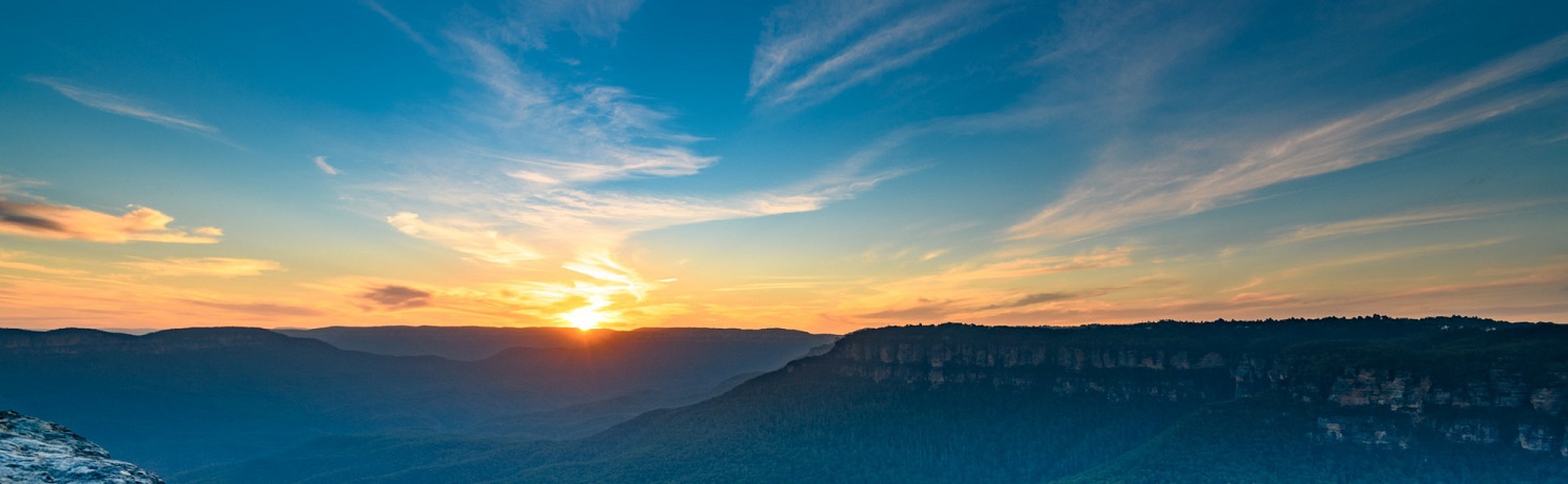 Enjoy a breathtaking view of the Blue Mountains as the sunset illuminates the region!